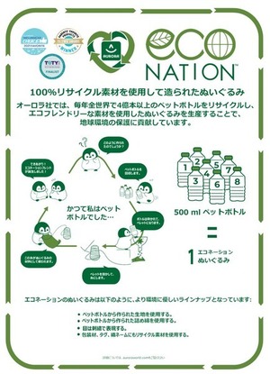 ・こちらのエコネーションシリーズのぬいぐるみは100%リサイクル素材を使用して造られています。